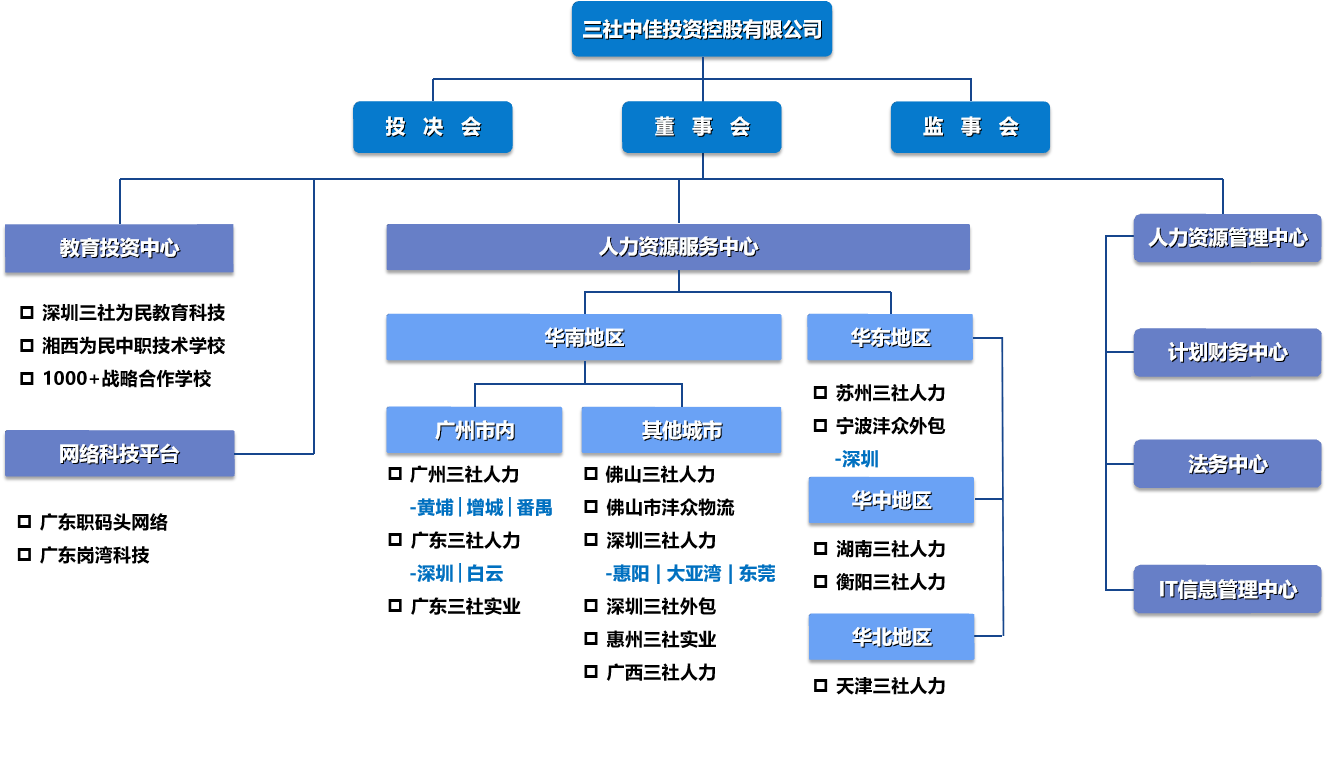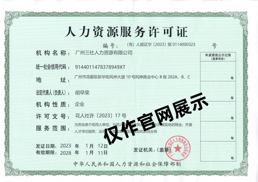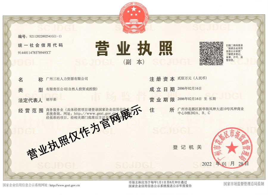 三社人力是一家专业致力于为客户提供人力资源外包服务、人力成本精算与支付、人才引进、专业人才测评、人力资源咨询等业务综合人力资源供应商,于2005年12月在广东省人才交流中心(现广东省人才服务局)的指导下成立,总部设在广州市。