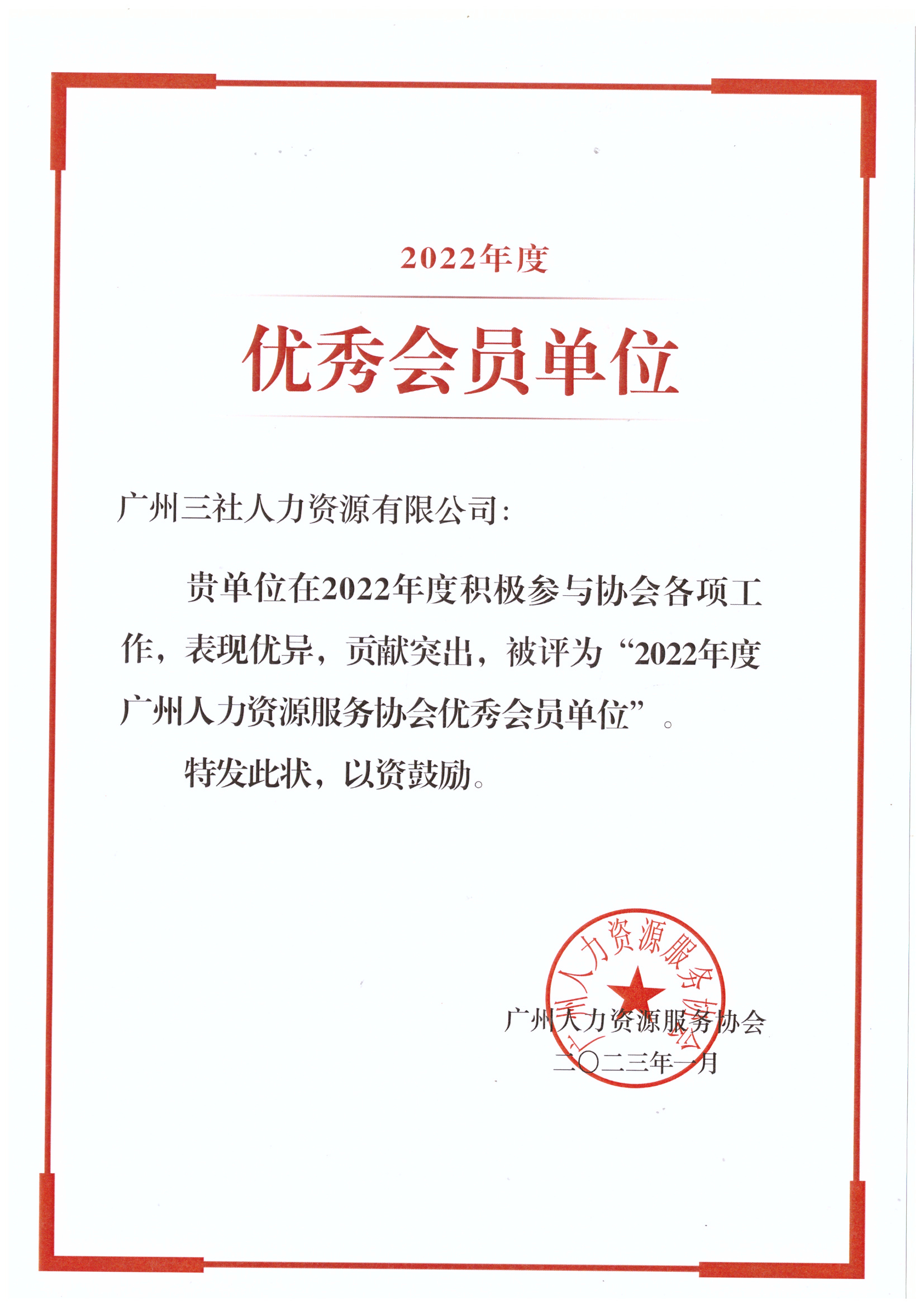 2022年度广州人力资源服务协会优秀会员单位