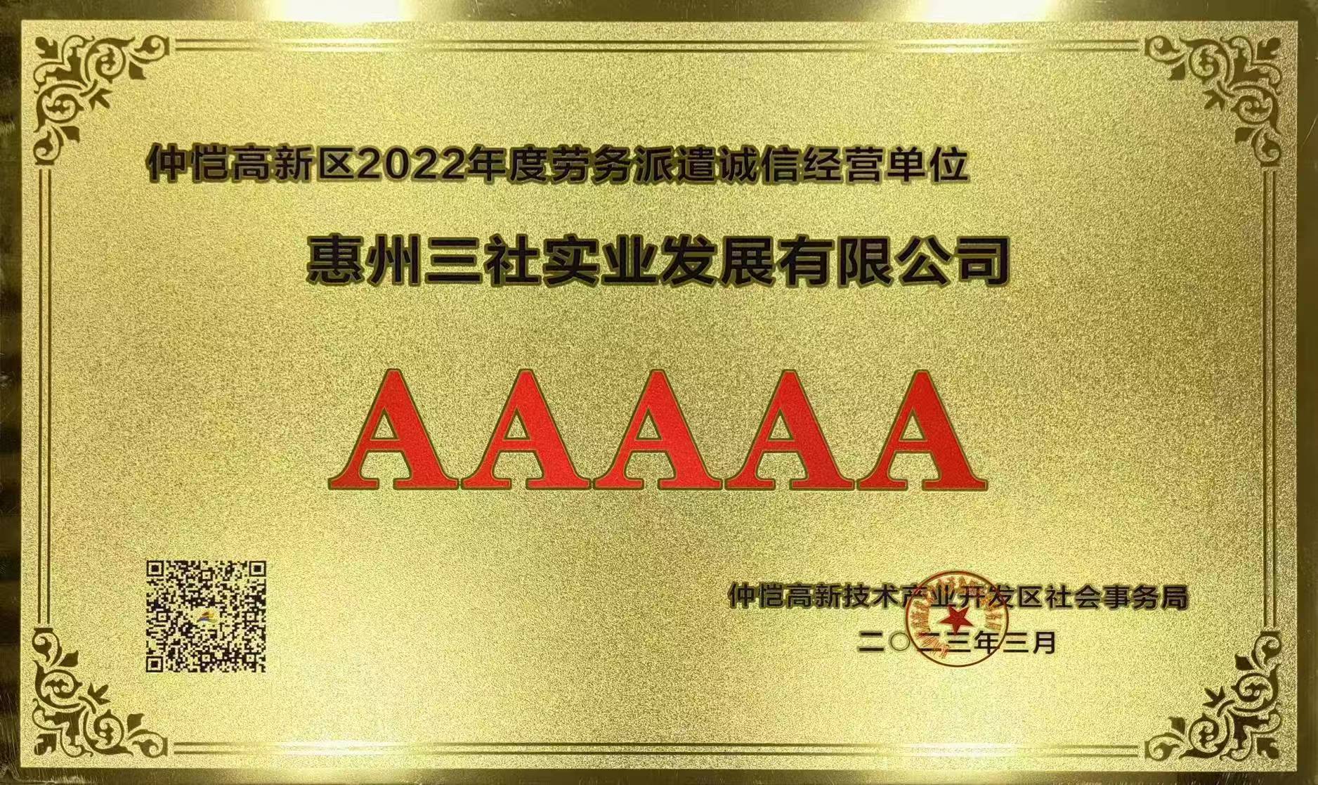 仲恺高新区劳务派遣诚信经营单位