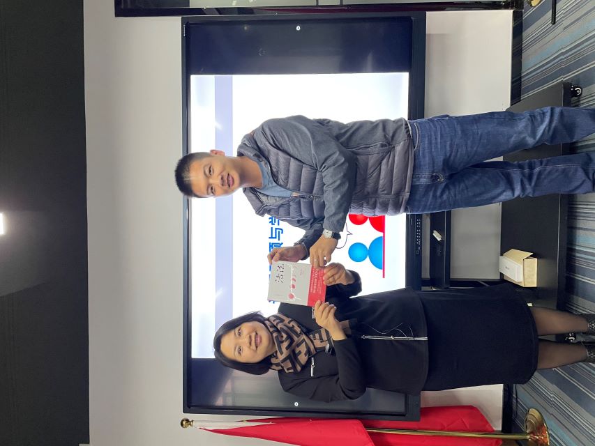 感恩节向刘老师(左)献花